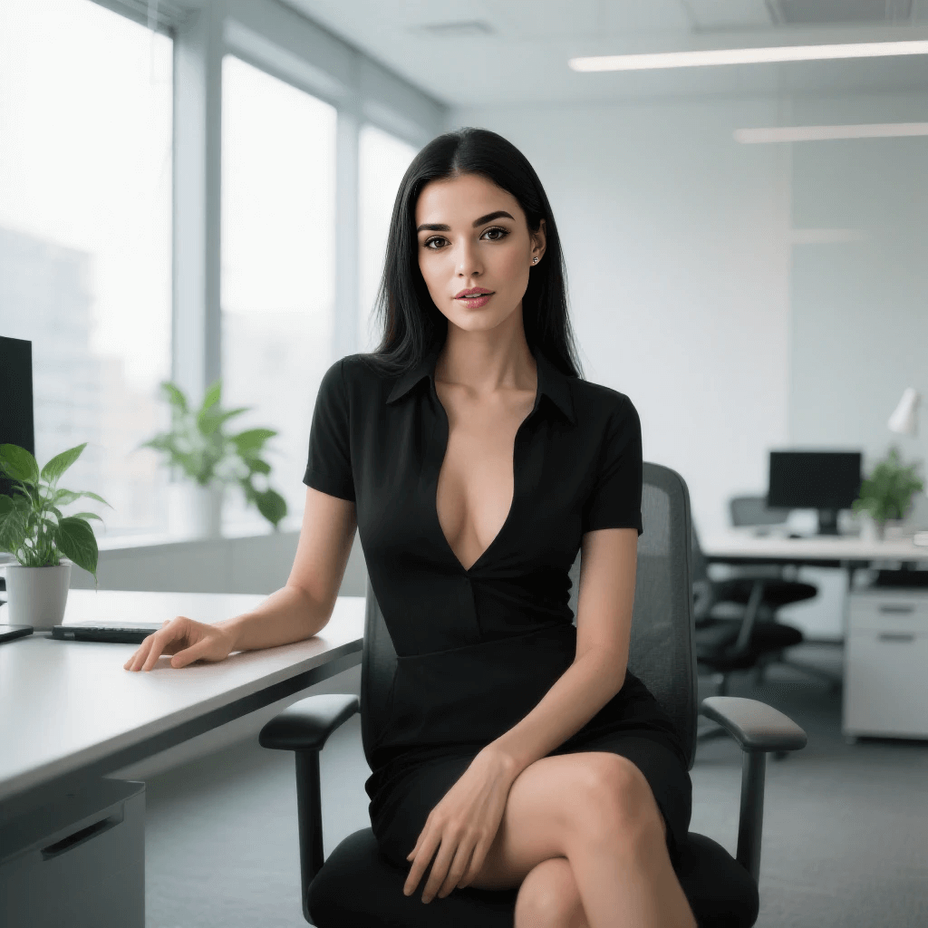 She sat down comfortably in the chair and took a sip from the bottle. Placing it between her legs, she yanked her blouse in different directions. The top buttons came undone. “Not enough,” she judged through the front camera of her smartphone and unbuttoned two more. First, she took a picture of herself from afar, and then left only her luscious young breasts in the frame, which were dressed in a light translucent bra.